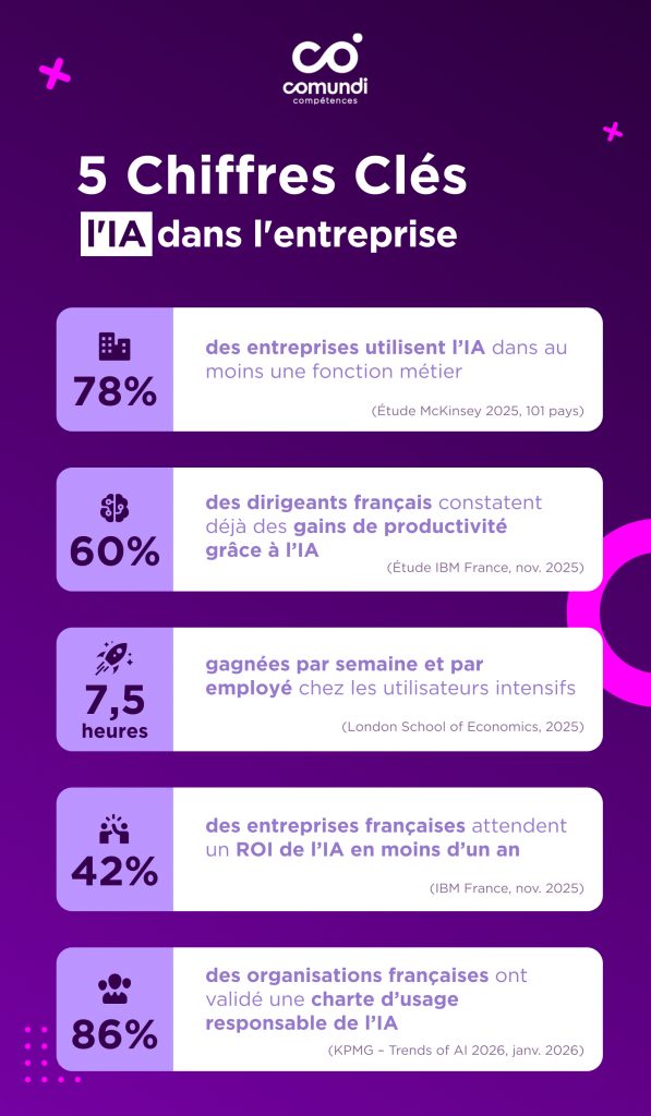 1 – 78 % des entreprises utilisent l’IA dans au moins une fonction métier